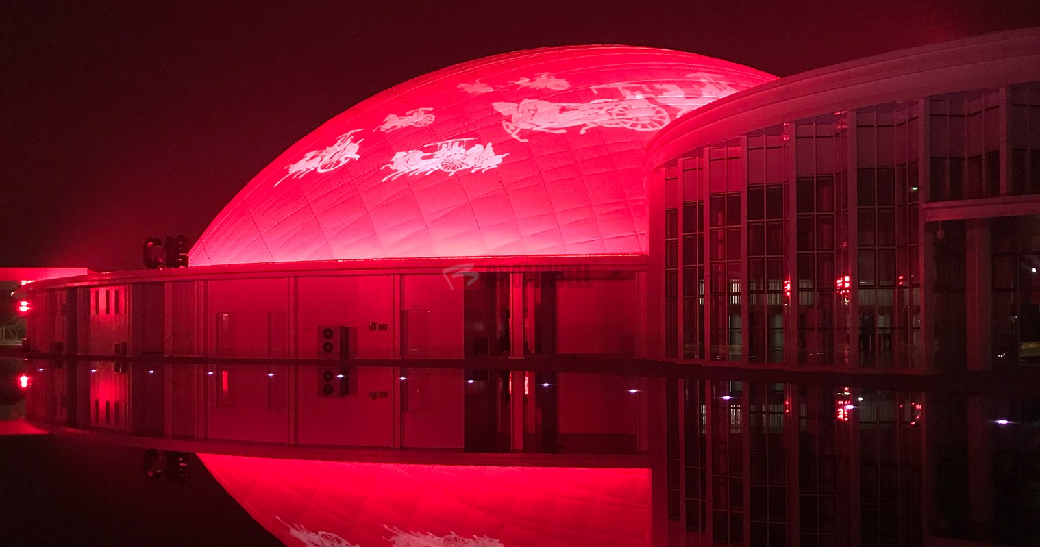 “路演中国”会议会展中心气膜场馆项目,是集会议、会展、活动、路演、赛事、演艺等功能于一体的大型综合场馆,位于淄博市新区核心政务板块,地理位置优越,紧邻千亩齐盛湖公园,环境宜人,它的到来,将给淄博带来一个城市级配套,和世贸中心、市文化中心共同打造出一条彰显城市时尚活力的中轴线,成为淄博市又一个对外展示城市形象的窗口。